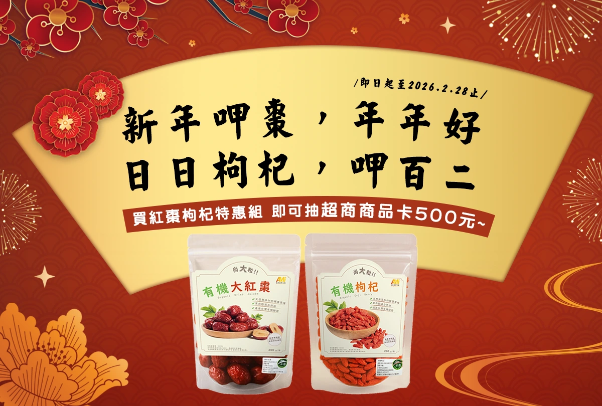 1.抽獎資格須符合條件:訂單商品含有紅棗枸杞特惠組。