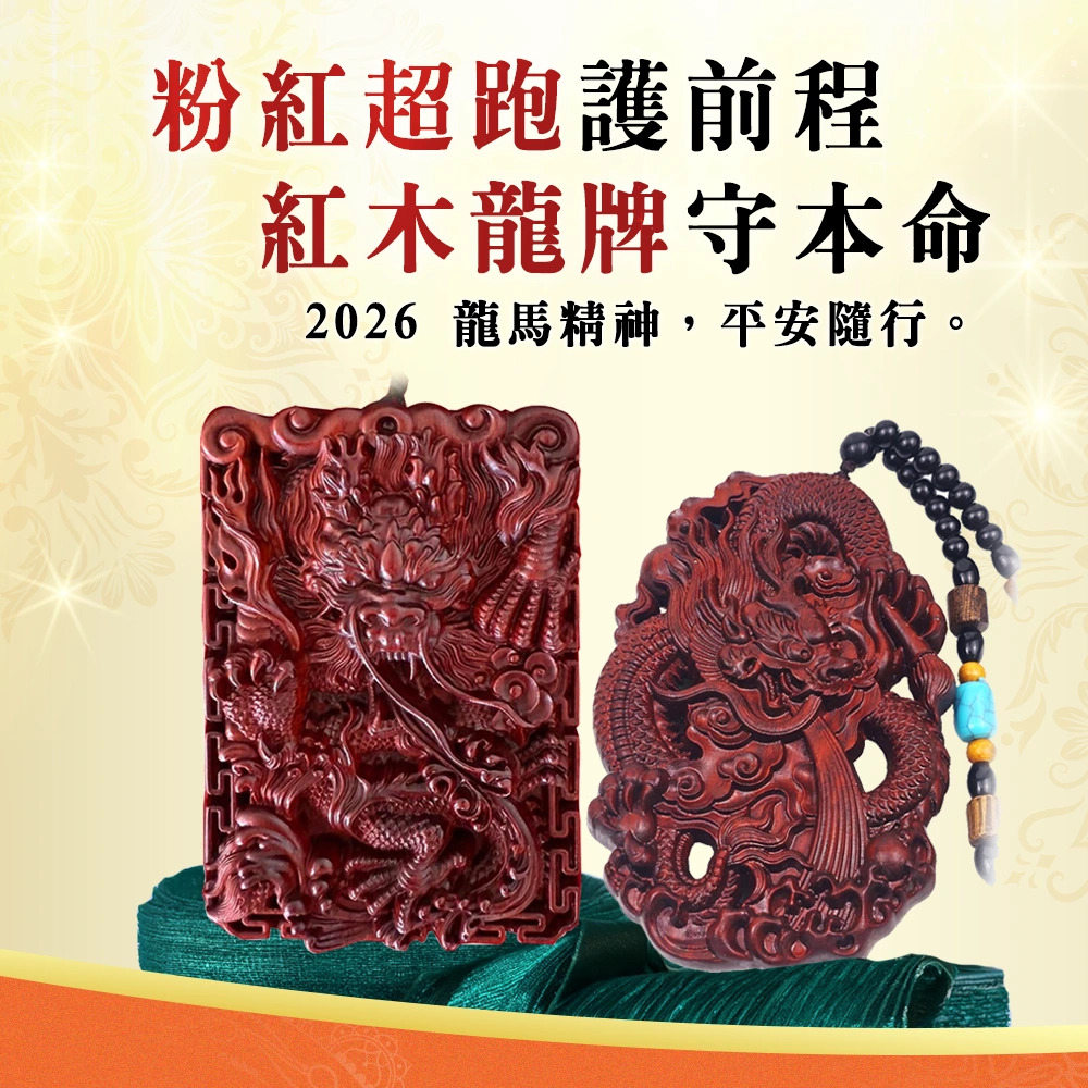 粉紅超跑護前程,紅木龍牌守本命:2026 龍馬精神,平安隨行。