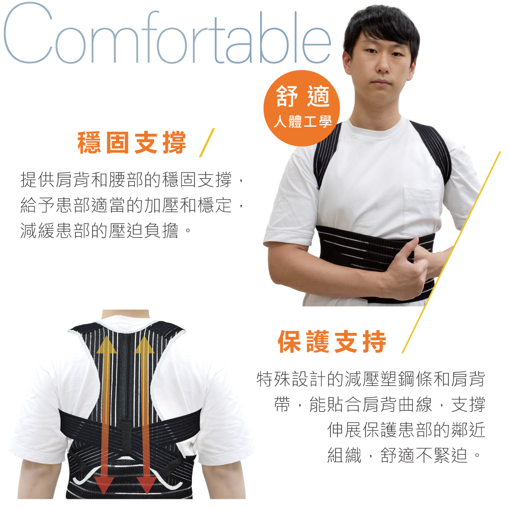 提供背部和腰部穩固支撑,並給予當加壓伸展,緩減患部負擔